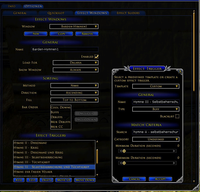 - Erstelle im BuffBars einen neuen "Effect Window"