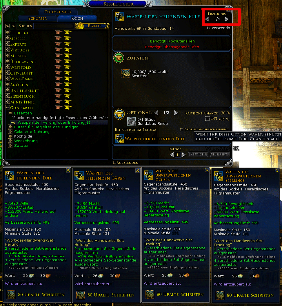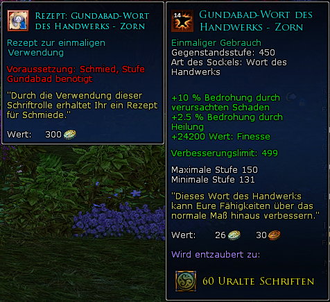 Die Herstellung der Rezepte kostet 1500 "Uralte Schriften"