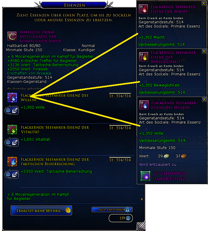 Beachte: Die Essenzkisten kannst du schon früher erwerben/eintauschen, aber die Essenzen kannst du nur ab der passenden Stufe (141 bzw. 150) verwenden!
